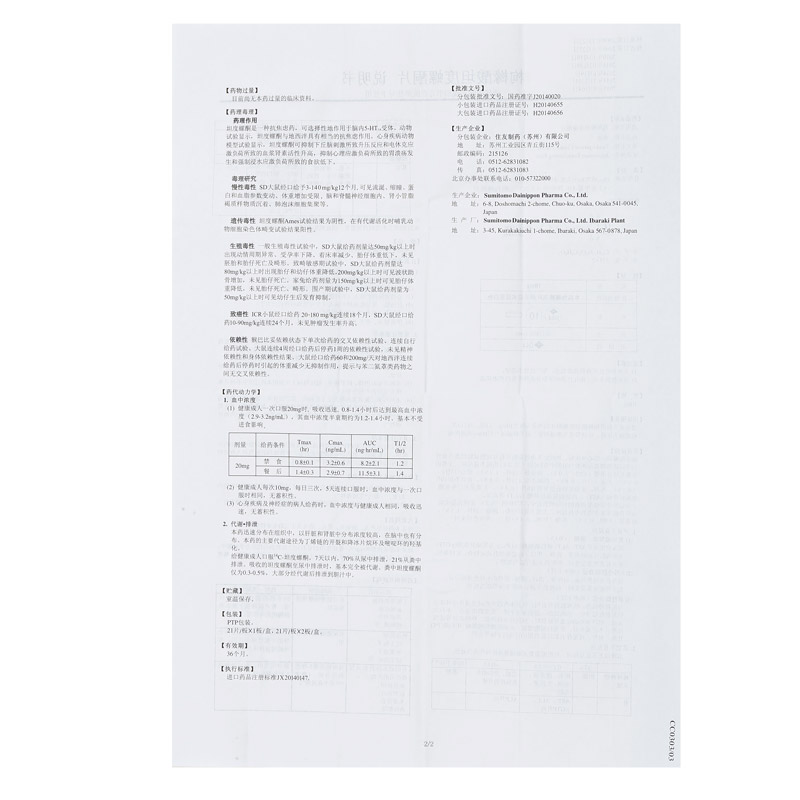 | 生产企业 | 住友制药(苏州)有限公司 |