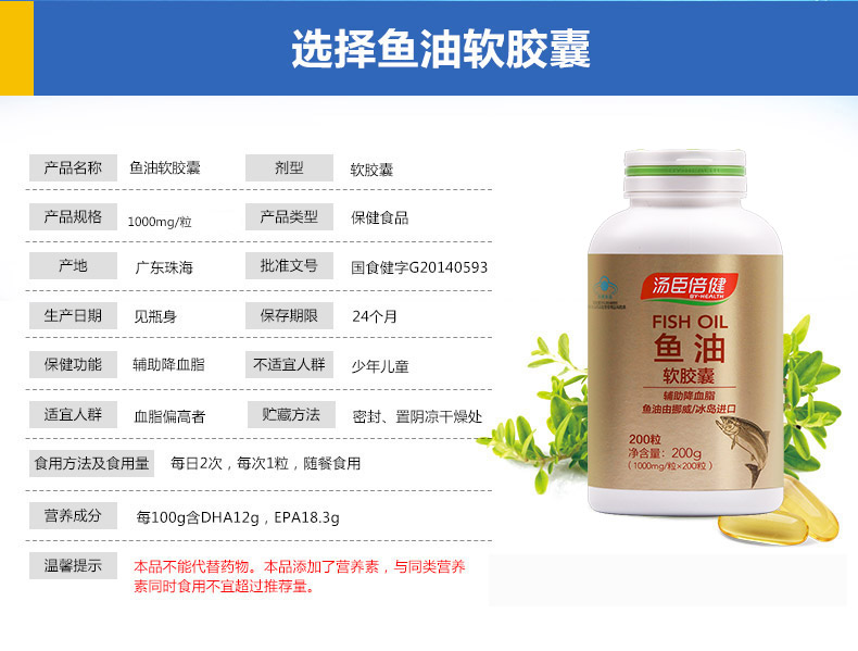 | 药品名称 | 鱼油软胶囊(汤臣倍健) |
