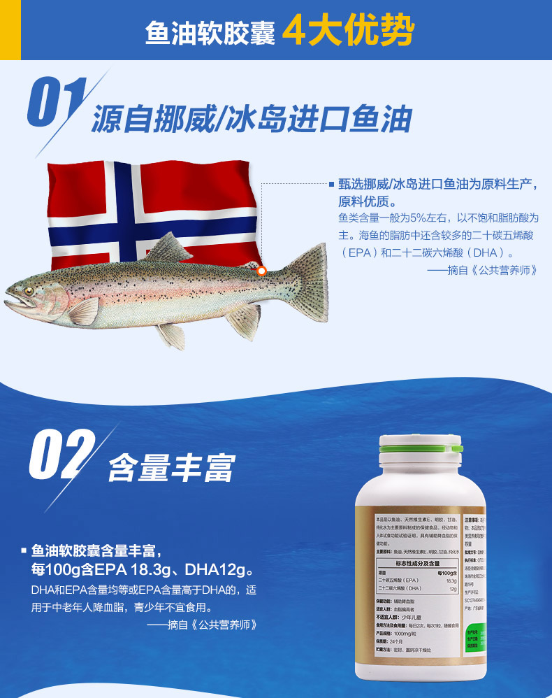 | 主要成份 | 营养成分 每粒含量 每100克含量dha(二十二碳六烯酸) 129mg 12.9gepa (二十碳五烯酸) 182mg 18.2g。 |