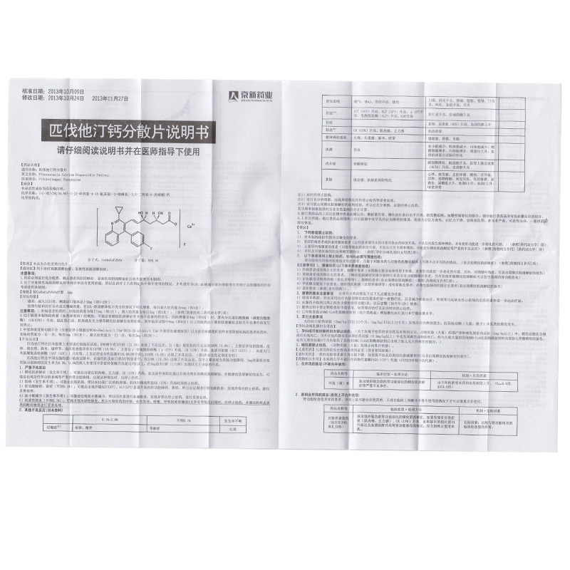 | 药品名称 | 匹伐他汀钙分散片(京可新) |
