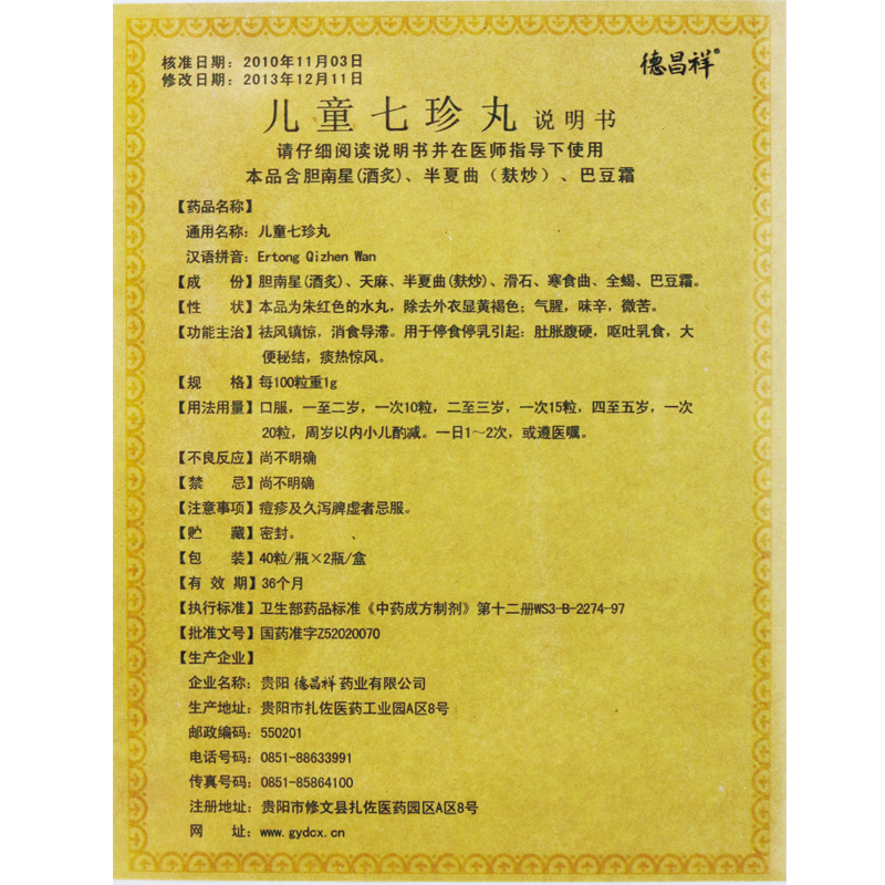 商品名/品牌儿童七珍丸/德昌祥