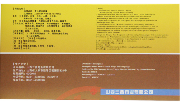 | 药品名称 | 雪山胃宝胶囊(迎泽) |