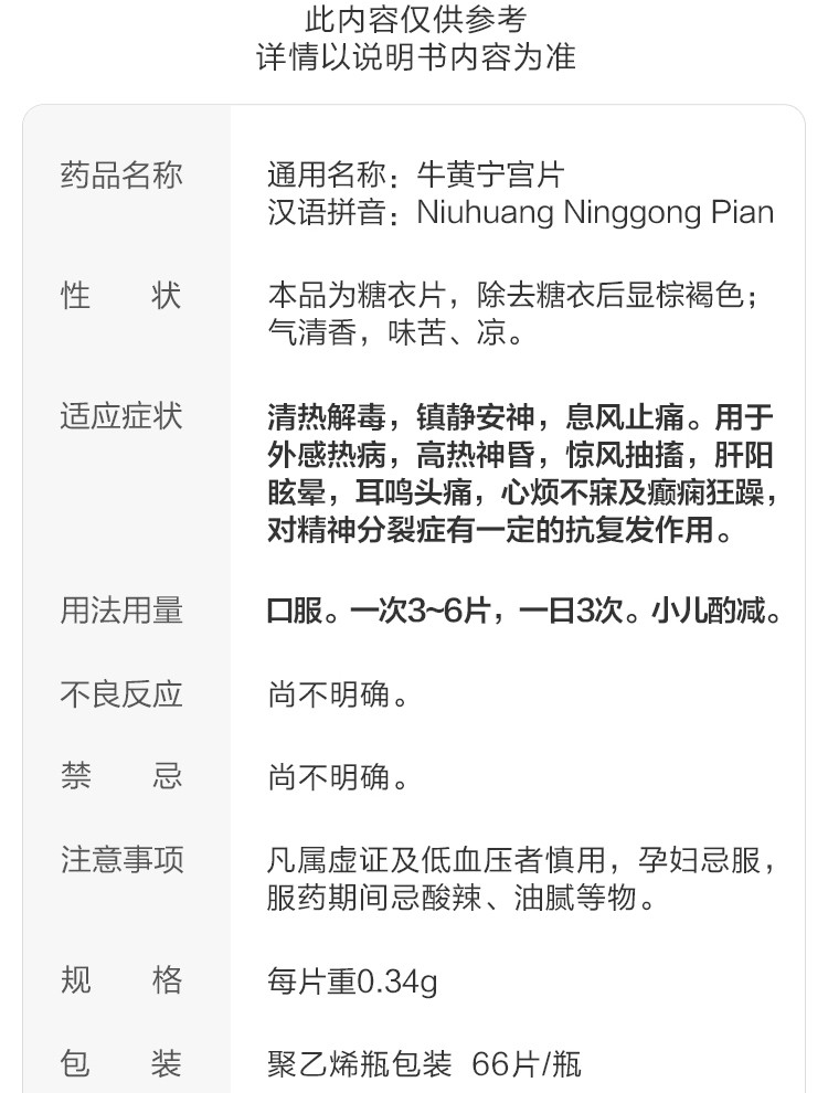 【通用名】牛黄宁宫片