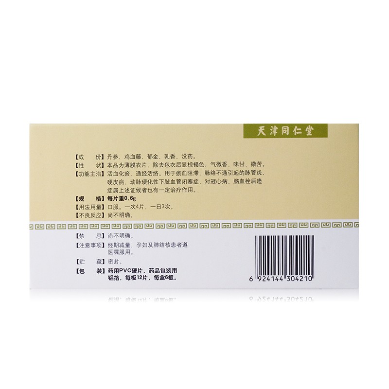 【主要成份】丹参、鸡血藤、郁金、乳香、没药。