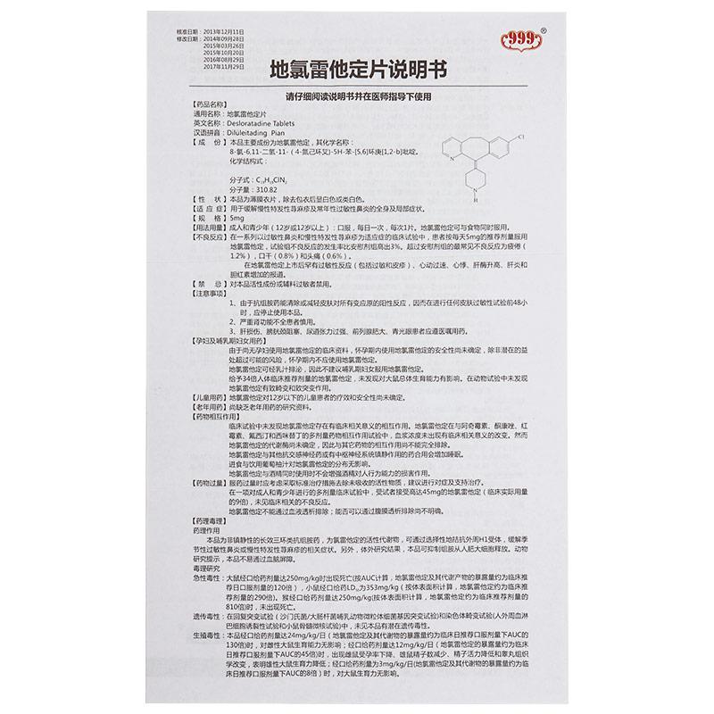 | 药品名称 | 地氯雷他定片(999) |