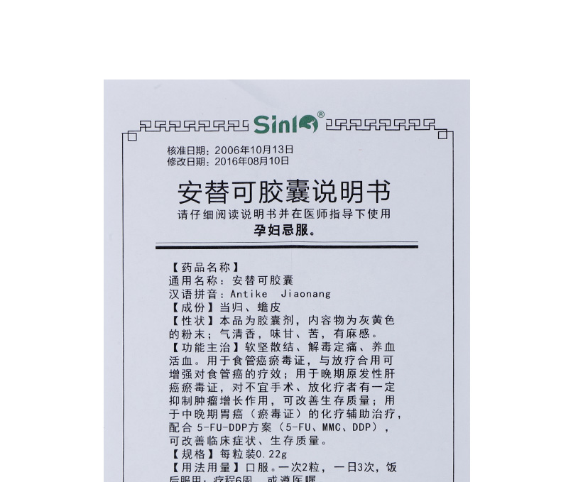| 商品名/品牌 | 安替可胶囊/sinl |