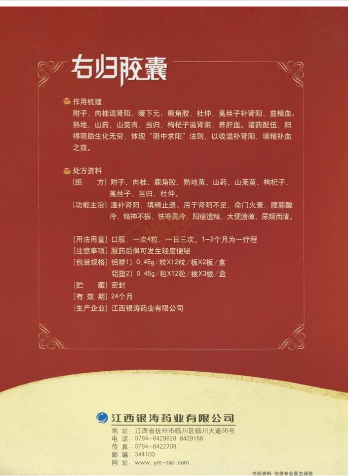 | 商品名/品牌 | 右归胶囊/银涛 |