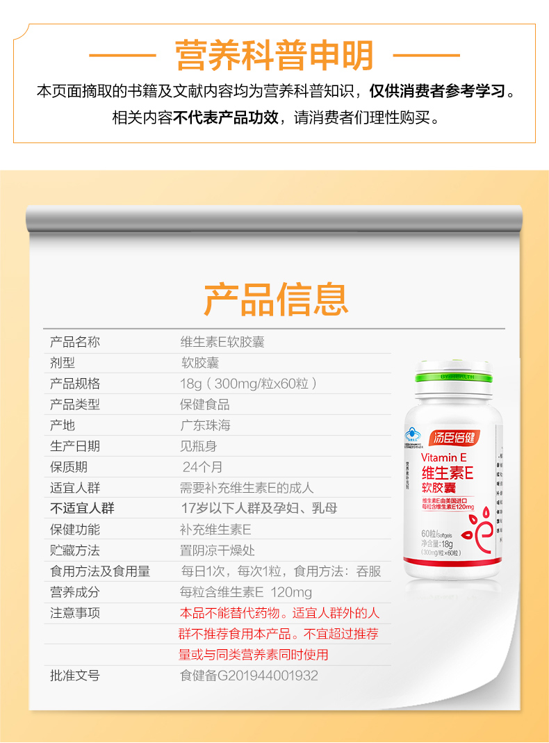 天然维生素E软胶囊(汤臣倍健)包装主图