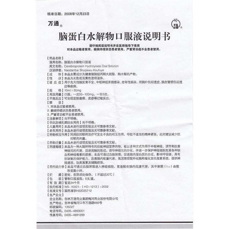 | 药品名称 | 脑蛋白水解物口服液(万通) |
