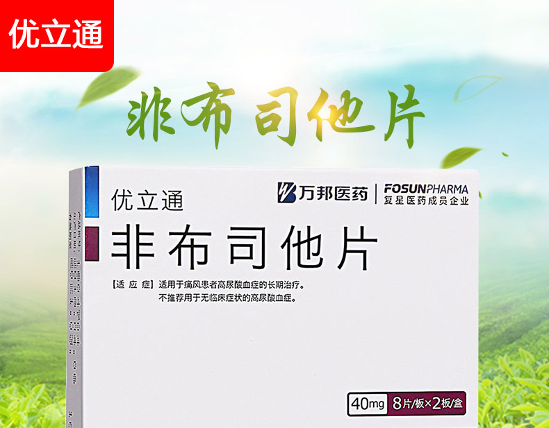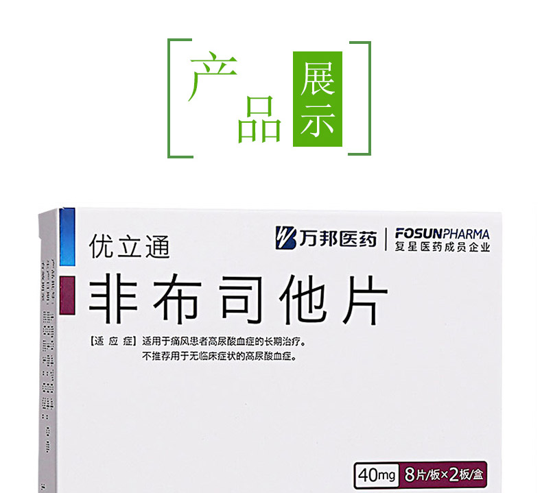 优立通 非布司他片的适应症:痛风,痛风性关节炎,老年人痛风,高尿酸血症,假痛风性关节炎,痛风石,遗传性高尿酸血症。