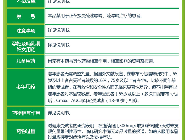 【成分】本品主要成分为非布司他,其化学名称为:2-[3-氰基-4-(2-甲基丙氧基)苯基]-4-甲基-5-噻唑甲酸。