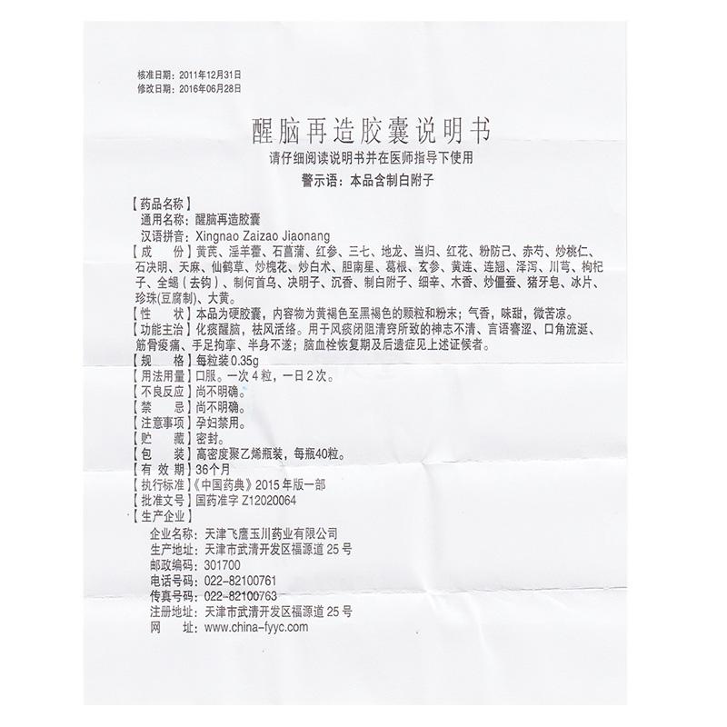 药品名称醒脑再造胶囊(玉川)