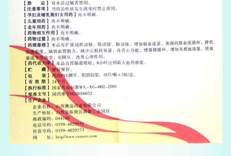 【药理毒理】本品有扩张冠状动脉、股动脉、脑动脉,增加脑血流量,加强四肢血流循环,降低血液黏度,减弱血管阻力,减少心肌耗氧量,改善心功能,增强微循环,增加末梢血流量,使血液流变学改变、有降压、改善心律作用。