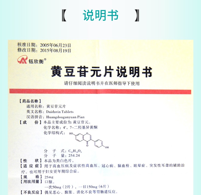 | 药品名称 | 黄豆苷元片(钰欣衡) |