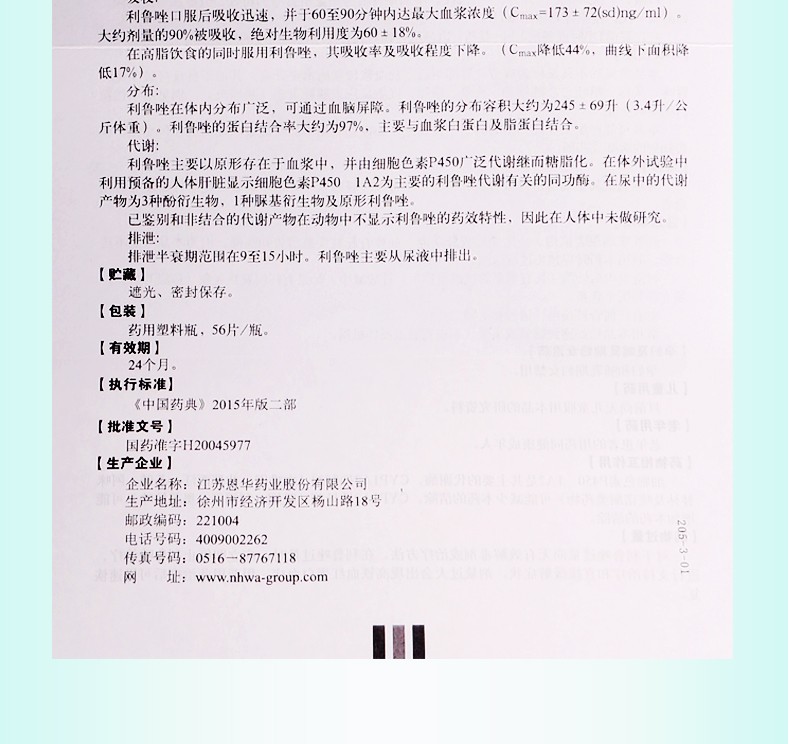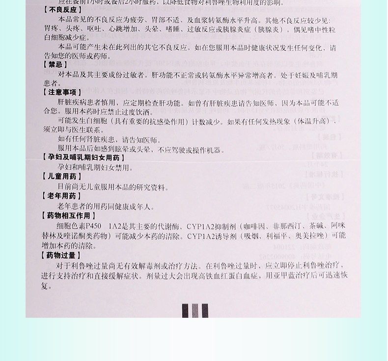 【成份】本品主要成份为利鲁唑,其化学名称为:2-氯基-6-三氟甲氧基苯并噻唑。
