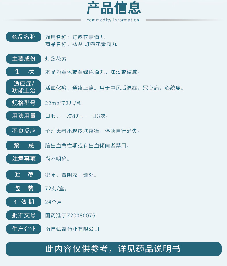 | 商品名/品牌 | 灯盏花素滴丸/弘益 |