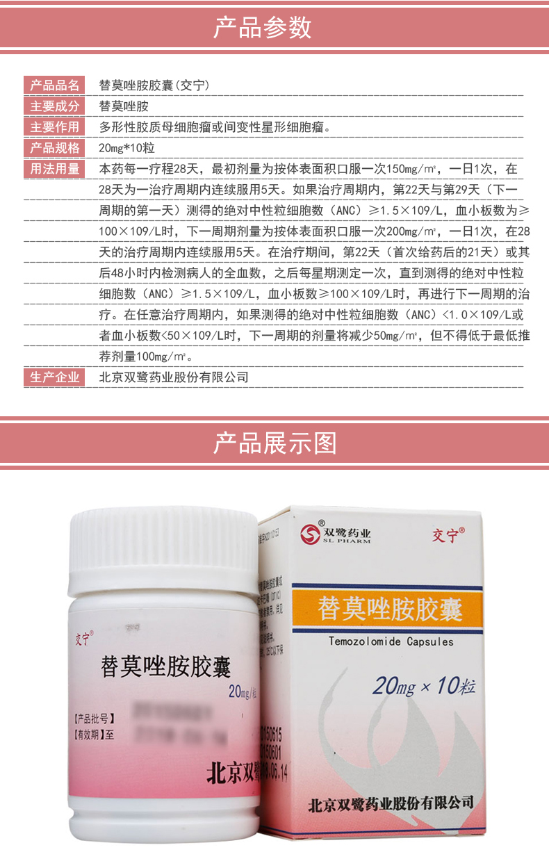 | 商品名/品牌 | 替莫唑胺胶囊/交宁 |