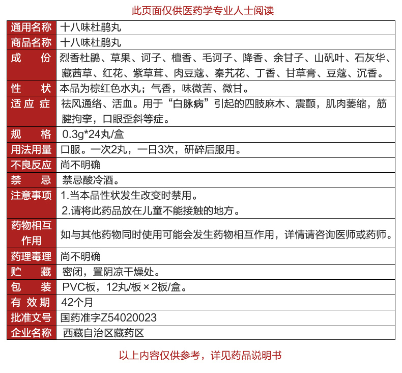名 称:十八味杜鹃丸