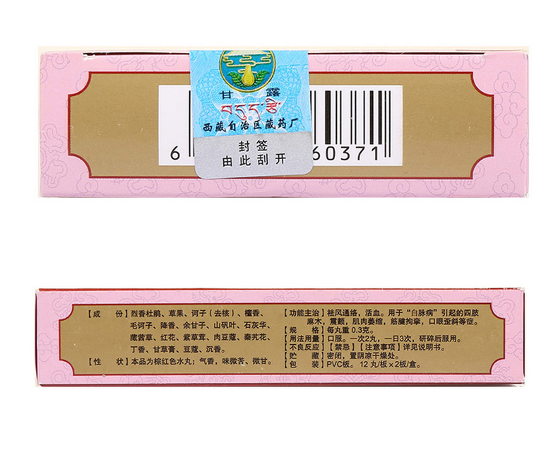 【主要成份】烈香杜鹃、草果、诃子(去核)、檀香、毛诃子、降香、余甘子、山矾叶、石灰华、藏茜草、红花、紫草茸、肉豆蔻、秦艽花、丁香、甘草膏、豆蔻、沉香。