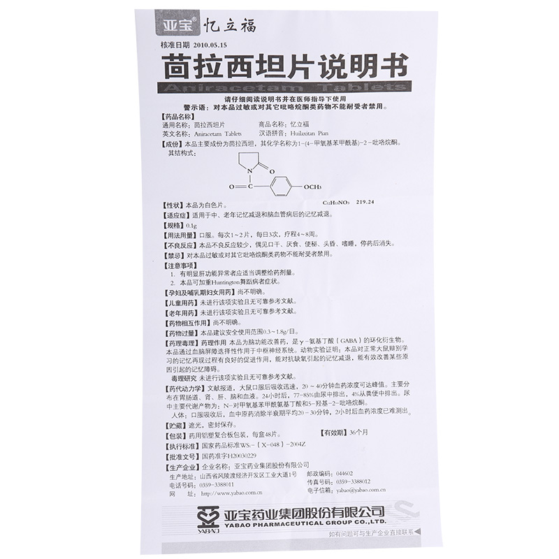 | 商品名/品牌 | 茴拉西坦片/忆立福 |