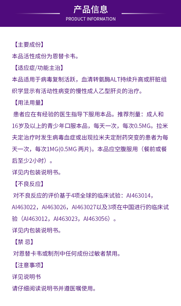 | 主要成份 | 主要成分为恩替卡韦。 |
