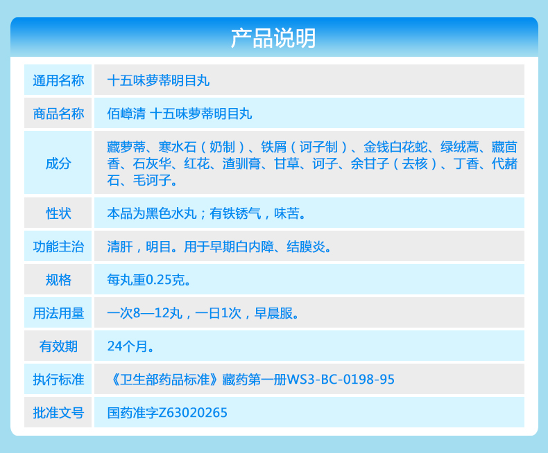 药品名称十五味萝蒂明目丸(佰嶂清)