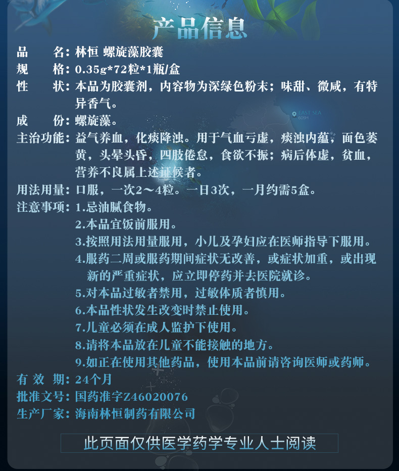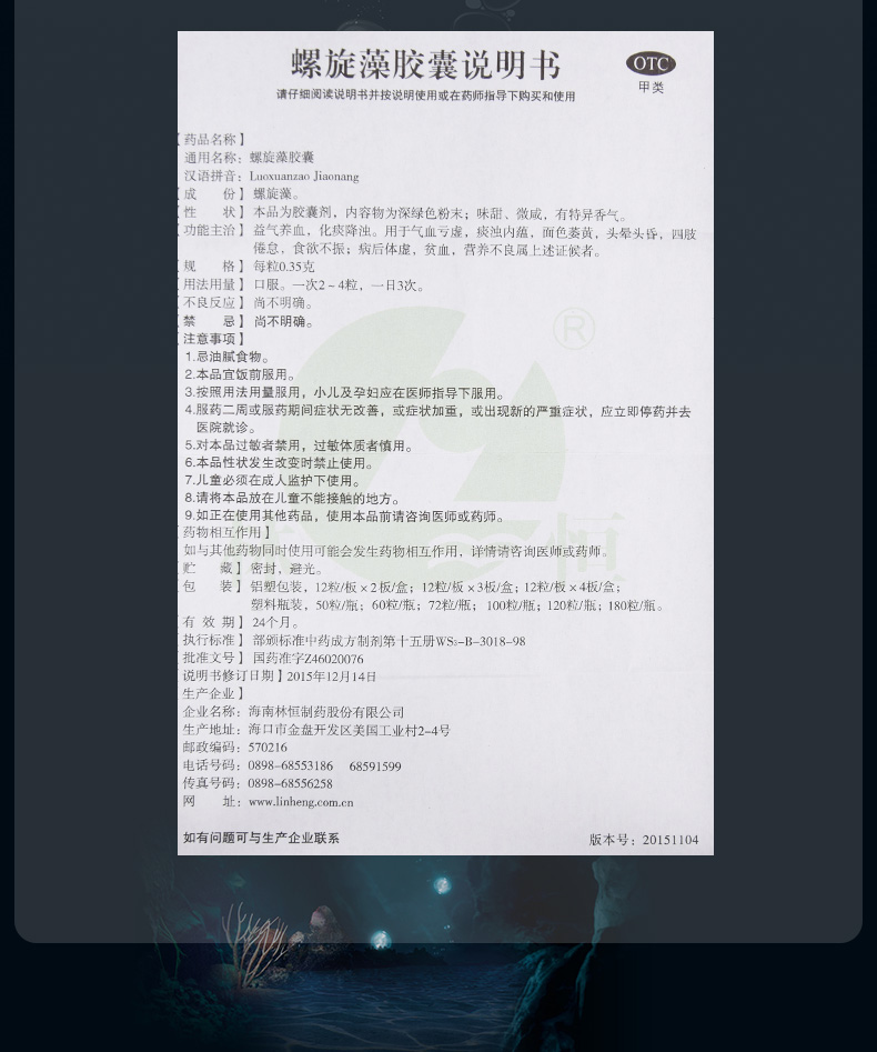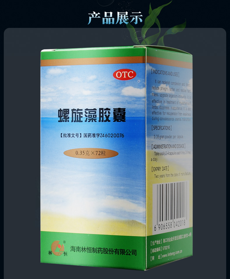 | 商品名/品牌 | 螺旋藻胶囊/林恒 |