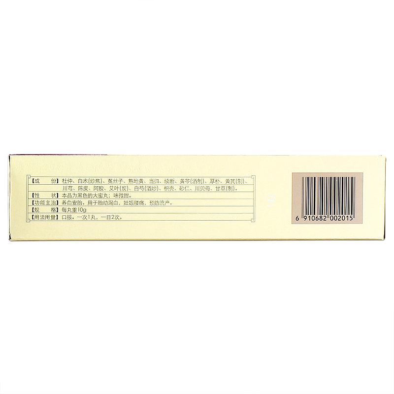 | 主要成份 | 杜仲、白术(炒焦)、菟丝子、熟地黄、当归、续断、黄芩(酒制)、厚朴、黄芪(制)、川芎、陈皮等18味。 |