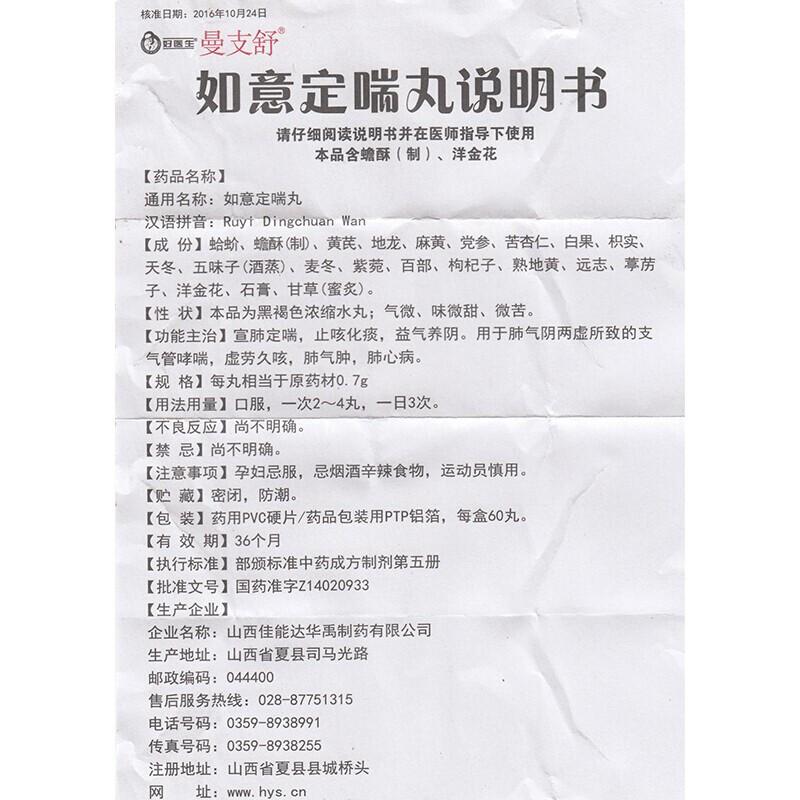 | 商品名/品牌 | 如意定喘丸/曼支舒 |