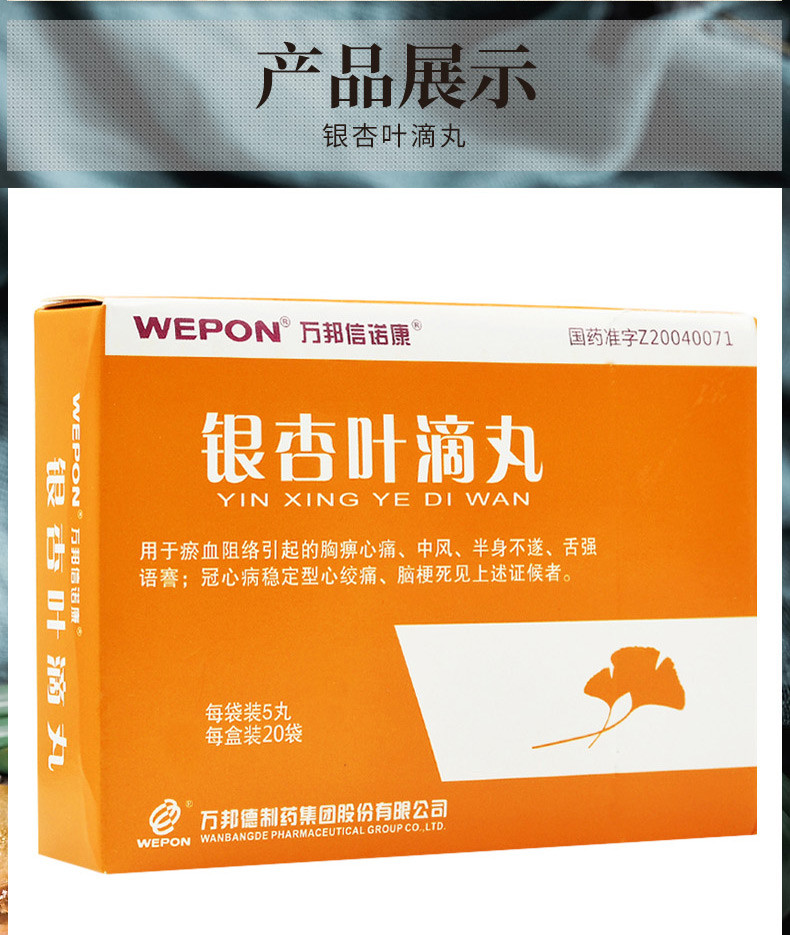 药品名称银杏叶滴丸(万邦信诺康)