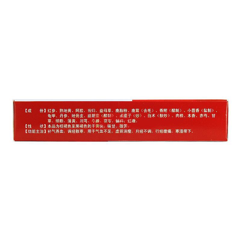 【主要成份】红参、当归、益母草、熟地黄、丹参、香附(醋制)、龟甲、地骨皮、延胡索(醋制)、莱菔子(炒)等。辅料为:红糖。