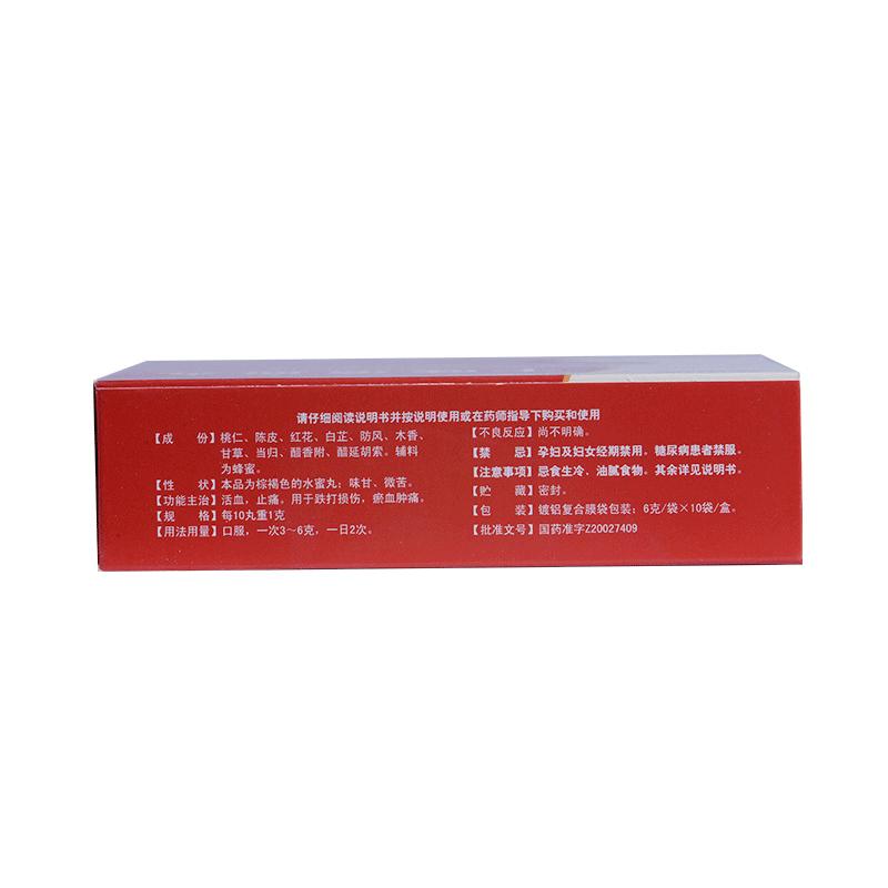 【主要成份】桃仁、陈皮、红花、白芷、防风、木香、甘草、当归、香附(醋炙)、延胡索(醋炙)。辅料为炼蜜。