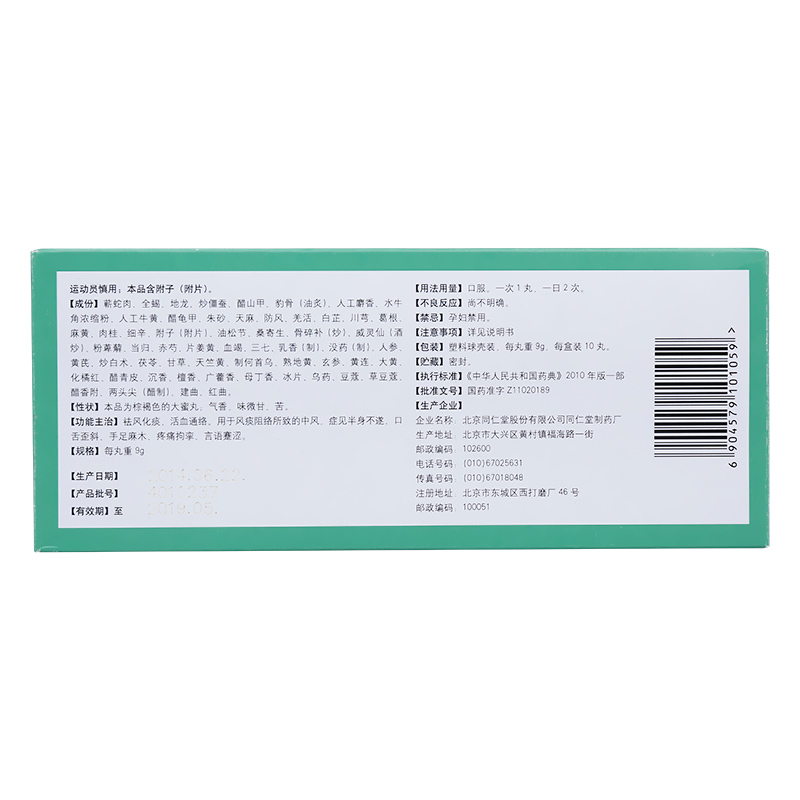| 生产企业 | 北京同仁堂股份有限公司同仁堂制药厂 |