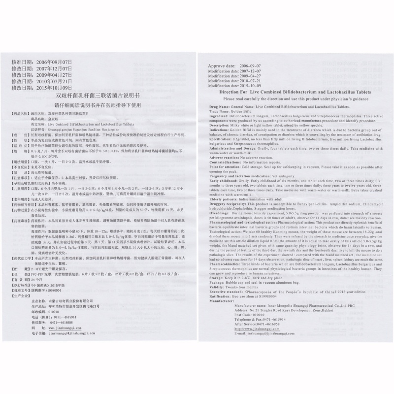 双歧杆菌乳杆菌三联活菌片(金双歧)