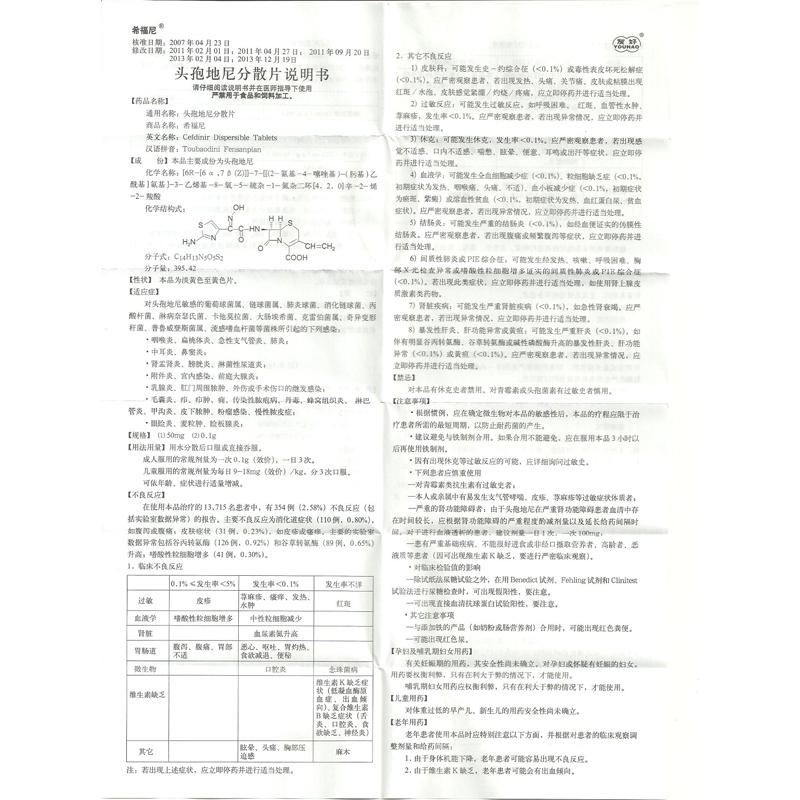 | 商品名/品牌 | 头孢地尼分散片/希福尼 |