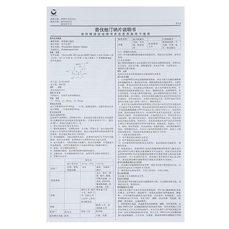 | 商品名/品牌 | 普伐他汀钠片/美百乐镇 |