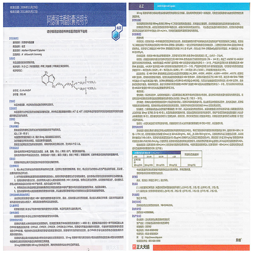 | 商品名/品牌 | 阿德福韦酯胶囊/名正 |