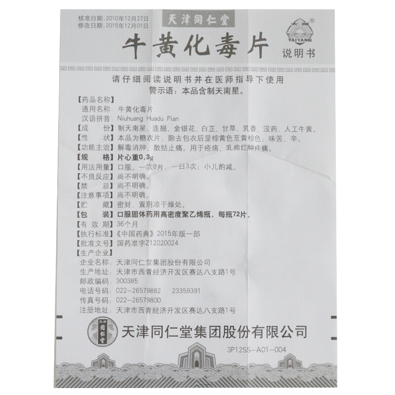 | 药品名称 | 牛黄化毒片(同仁堂) |