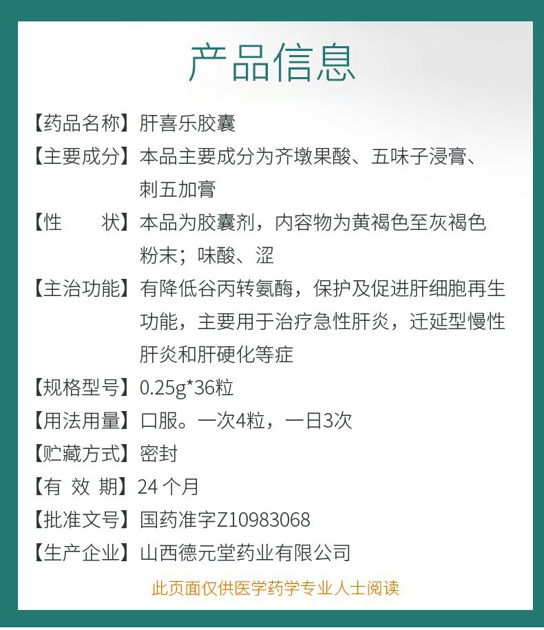 | 药品名称 | 肝喜乐胶囊(德元堂) |