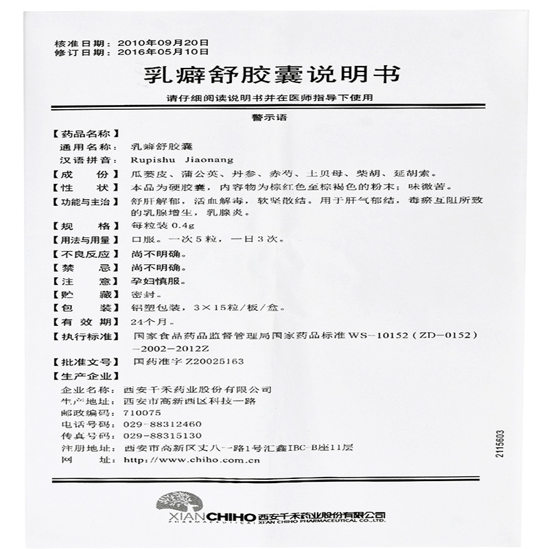 | 药品名称 | 乳癖舒胶囊(千禾伊舒) |