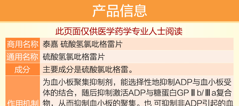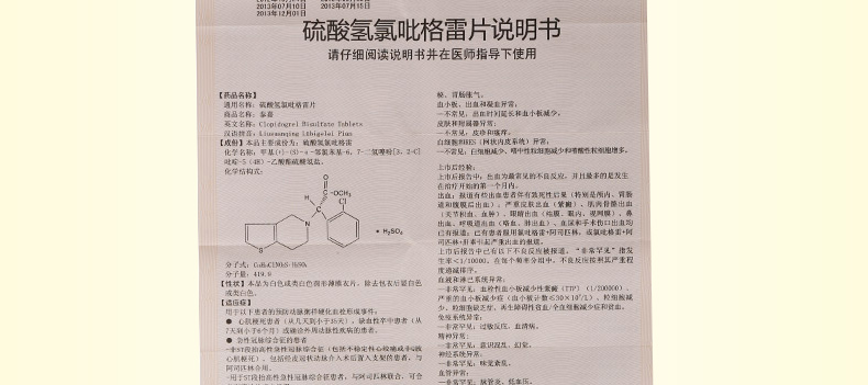 | 商品名/品牌 | 硫酸氢氯吡格雷片/泰嘉 |