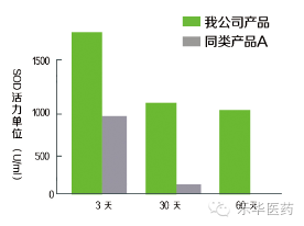 我公司产品在开启后两个月内SOD活力能保持在1000U/ml以上,而同类产品开启后第3天活力就下降到1000U/ml以下,两个月后基本检测不到SOD活力。