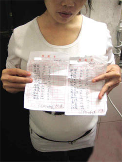 为了判断中药是不是有问题,1月8日,辛女士和家人到国康药店讨要处方,在他们的坚持下,店长让人抄回一份处方,上面写了紫胡、当归、川芎等14项药名。“不是开药时的那张,因为当时是把表格里16行都写满了的。”辛女士即时反驳,店长又让人送来第二份处方,这次药方中出现了红花这种孕妇忌用的药材。辛女士仍表示不是原件,店长又让人送来第三张,这次是一张复印件,右边用数字标明了总重量。