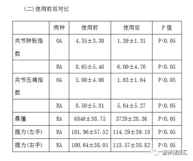 1.选用RA及OA病情较轻的病例,结果OA有效率为91.6%,RA有效率为75%,而两者相加总有效率为82.7%。