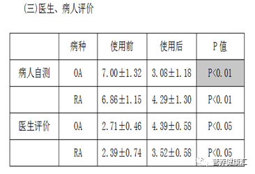 2.在使用前后的观察统计结果显示,COM对关节肿痛和晨僵具有一定疗效,可作为治疗关节炎的辅助品,而且在临床观察中未发现有一例副反应出现。在我们的临床观察中发现,CMO对骨关节炎效果较好。