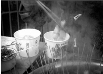 而对一次性纸碗的使用,消费者也已经习以为常。记者随机采访了几位消费者,均表示“不了解”或者“不在乎,并表示,在小吃摊反正很快就吃完了,实在烫手多套一个纸碗就行了”。